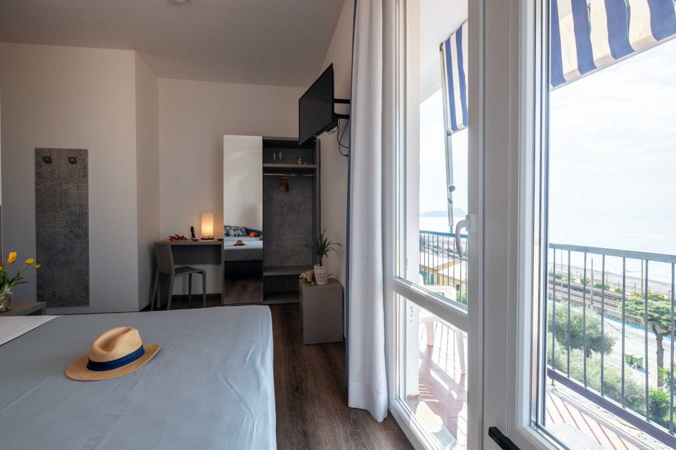 The rooms have a balcony equipped with seating and are facing the sea.