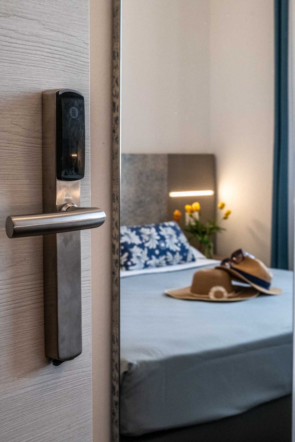 Camera spaziosa composta da un letto matrimoniale o da due letti singoli, per accogliere due persone e, su richiesta, un lettino per bambini fino a 3 anni.