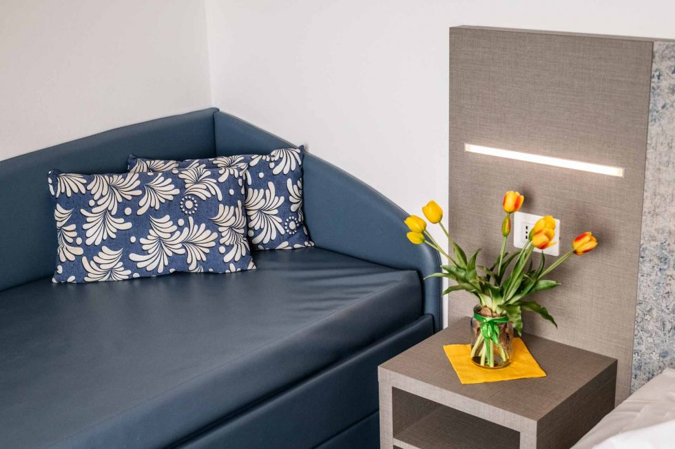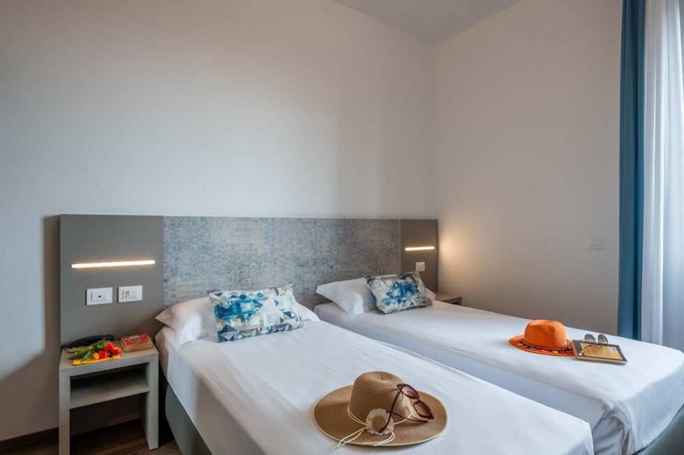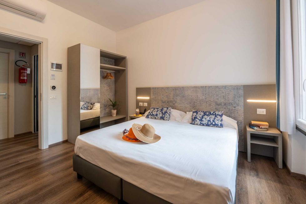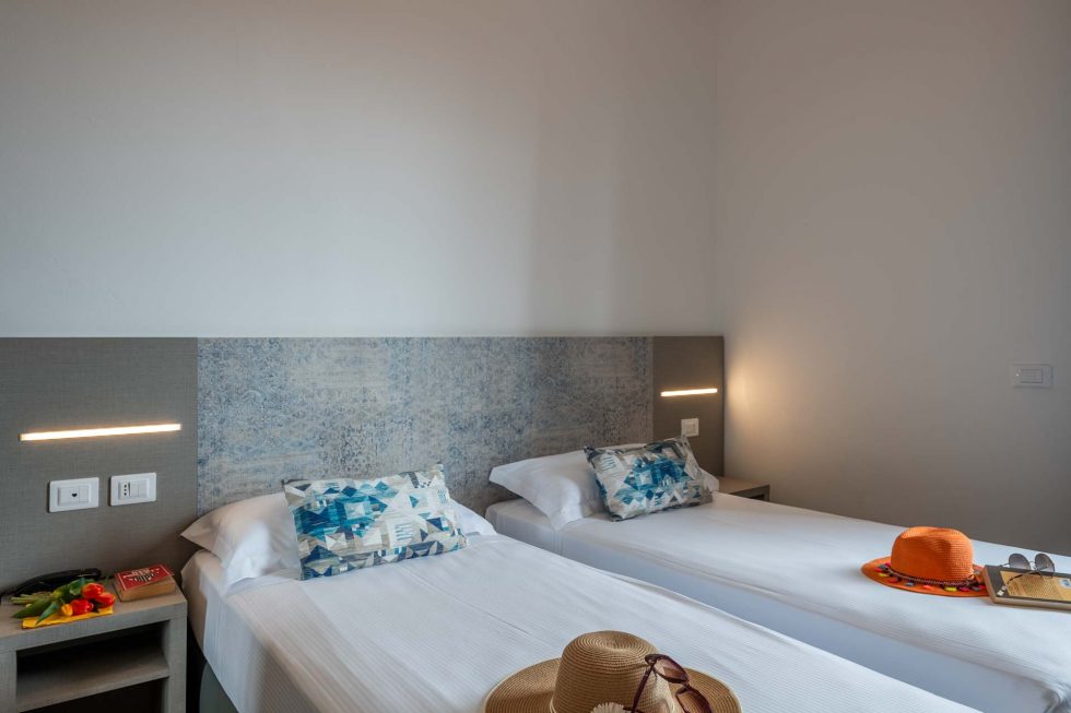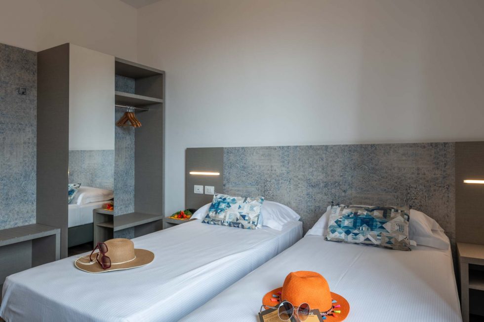 Camera basic composta da un letto matrimoniale o da due letti singoli, per accogliere due persone e, su richiesta, un lettino per bambini fino a 2 anni.