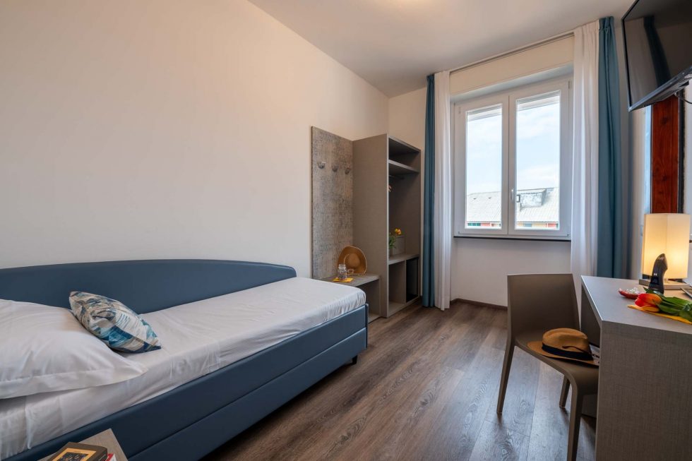 Le camere hanno la finestra e possono affacciare sulla collina di Santa Giulia o avere vista laterale.